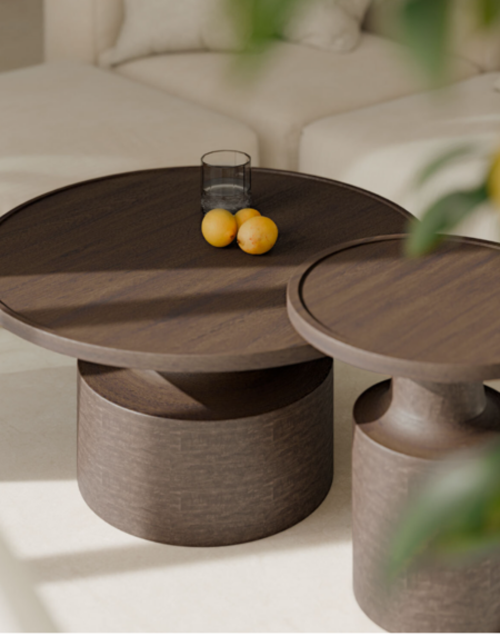 Aunque lo parezca, NO ES UN TRONCO. Se trata de una mesa auxiliar de diseño. Formada por una tapa de mármol y barras de madera natural.