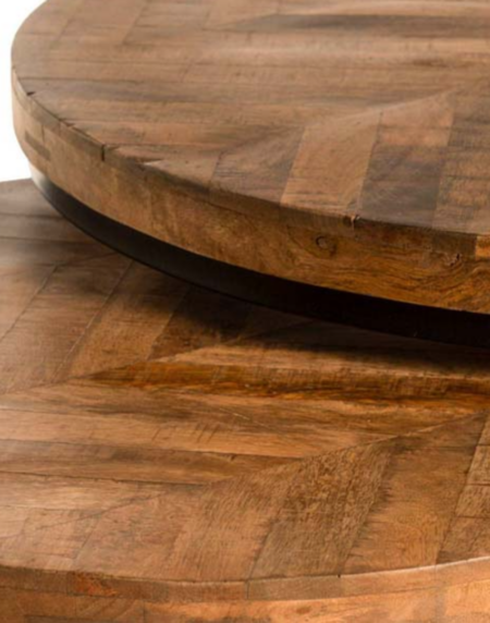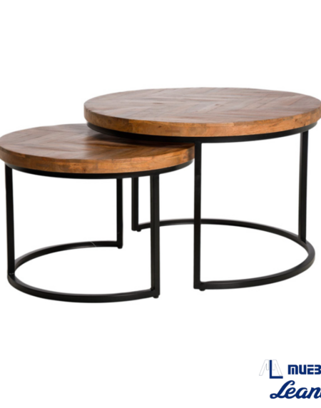 Mesa de centro con tapa de madera de acacia 120 x 60 cm y patas de metal lacado mate en color negro.