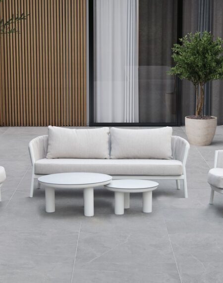 El Conjunto de Aluminio y Cuerda Aldara-8 es la elección perfecta para quienes buscan estilo, confort y durabilidad en su espacio exterior. Este elegante set incluye un amplio sofá de tres plazas, dos sillones individuales y una mesa de centro, ideal para disfrutar de momentos de relajación en el jardín, la terraza o el porche. Su estructura de aluminio garantiza resistencia y ligereza, mientras que el trenzado de cuerda náutica, tejido a mano, aporta un toque sofisticado y artesanal. Diseñada para soportar las inclemencias del tiempo, esta cuerda es altamente resistente, no se deshilacha ni se destensa con el uso, manteniendo su estética impecable a lo largo del tiempo.