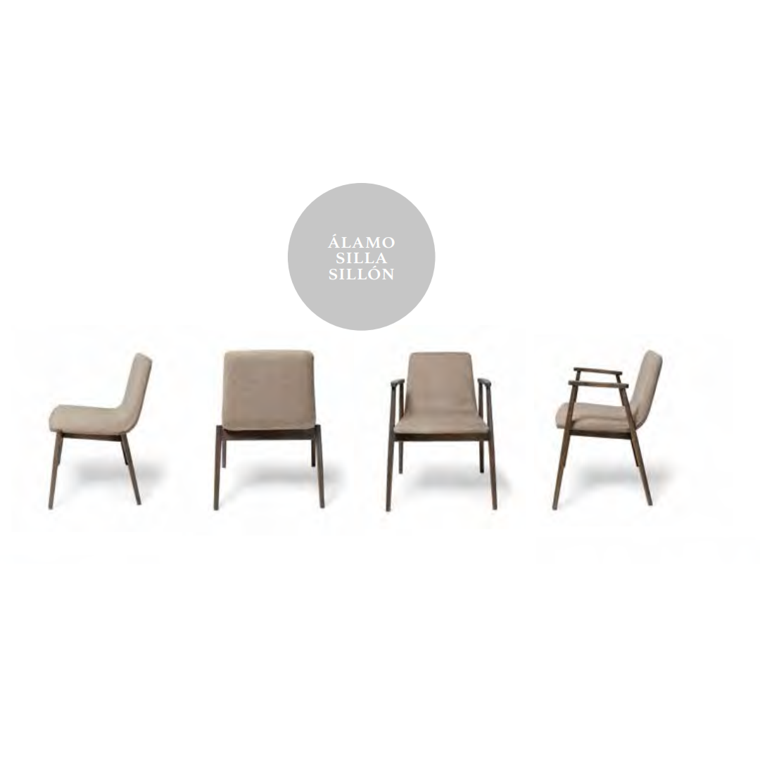 Álamo silla y Álamo sillón piezas con gran riqueza y artesanía en su diseño, construido con técnicas tradicionales para conseguir una agradable estética.