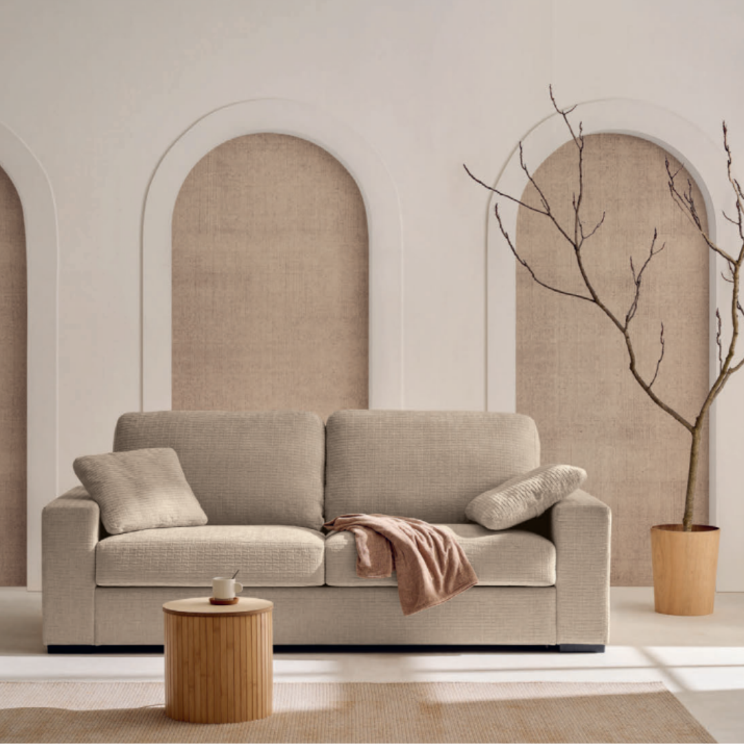 El Sofá Cama Bari, con su sistema de apertura italiano, ofrece comodidad absoluta.