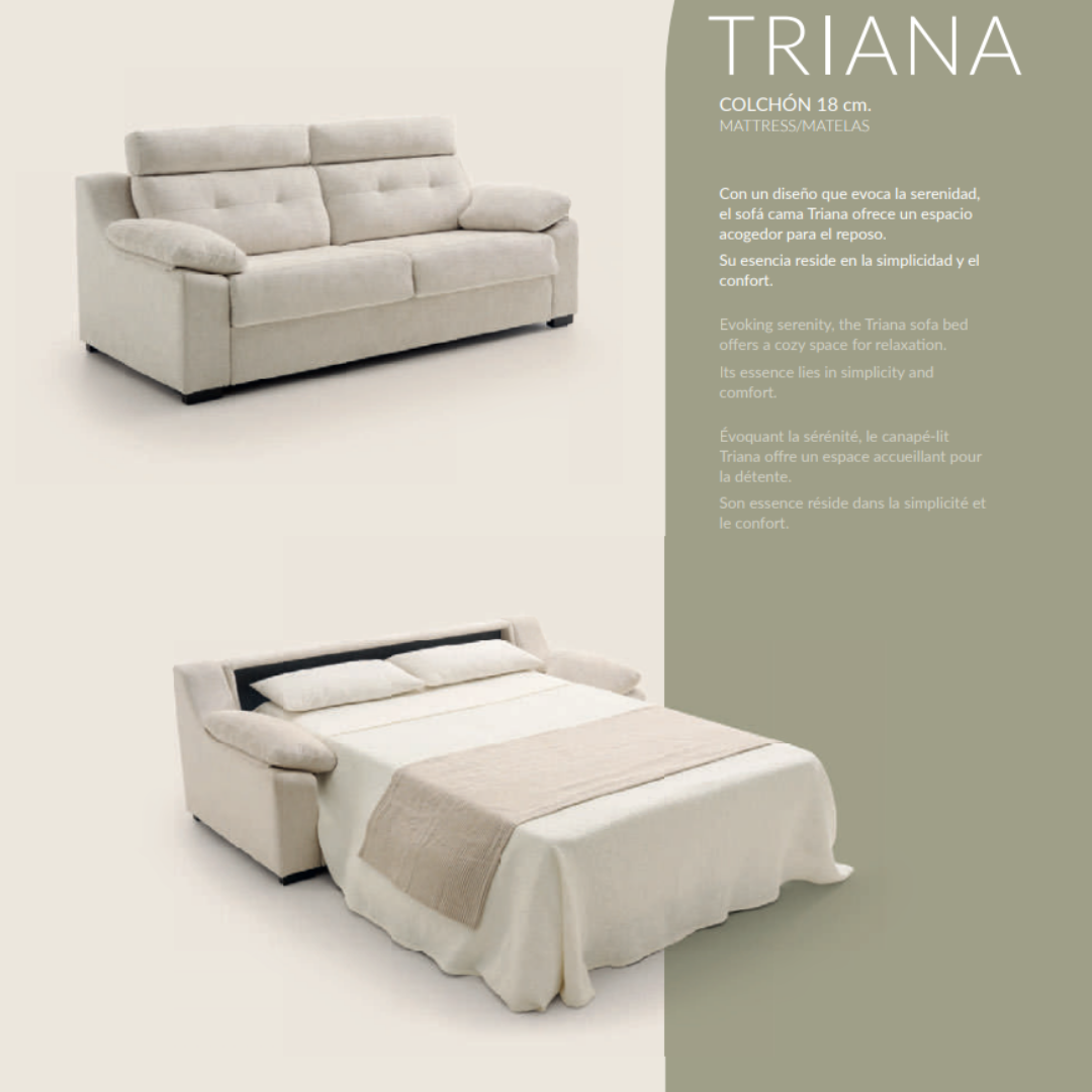 Con un diseño que evoca la serenidad, el sofá cama Triana ofrece un espacio acogedor para el reposo.