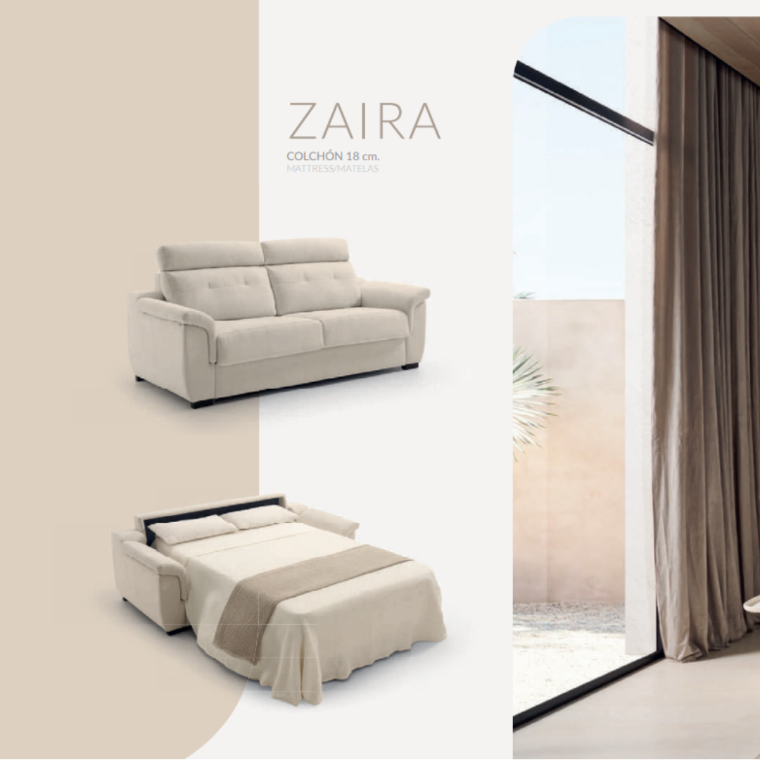 El sofá cama Zaira destaca por su elegancia sutil y líneas limpias.