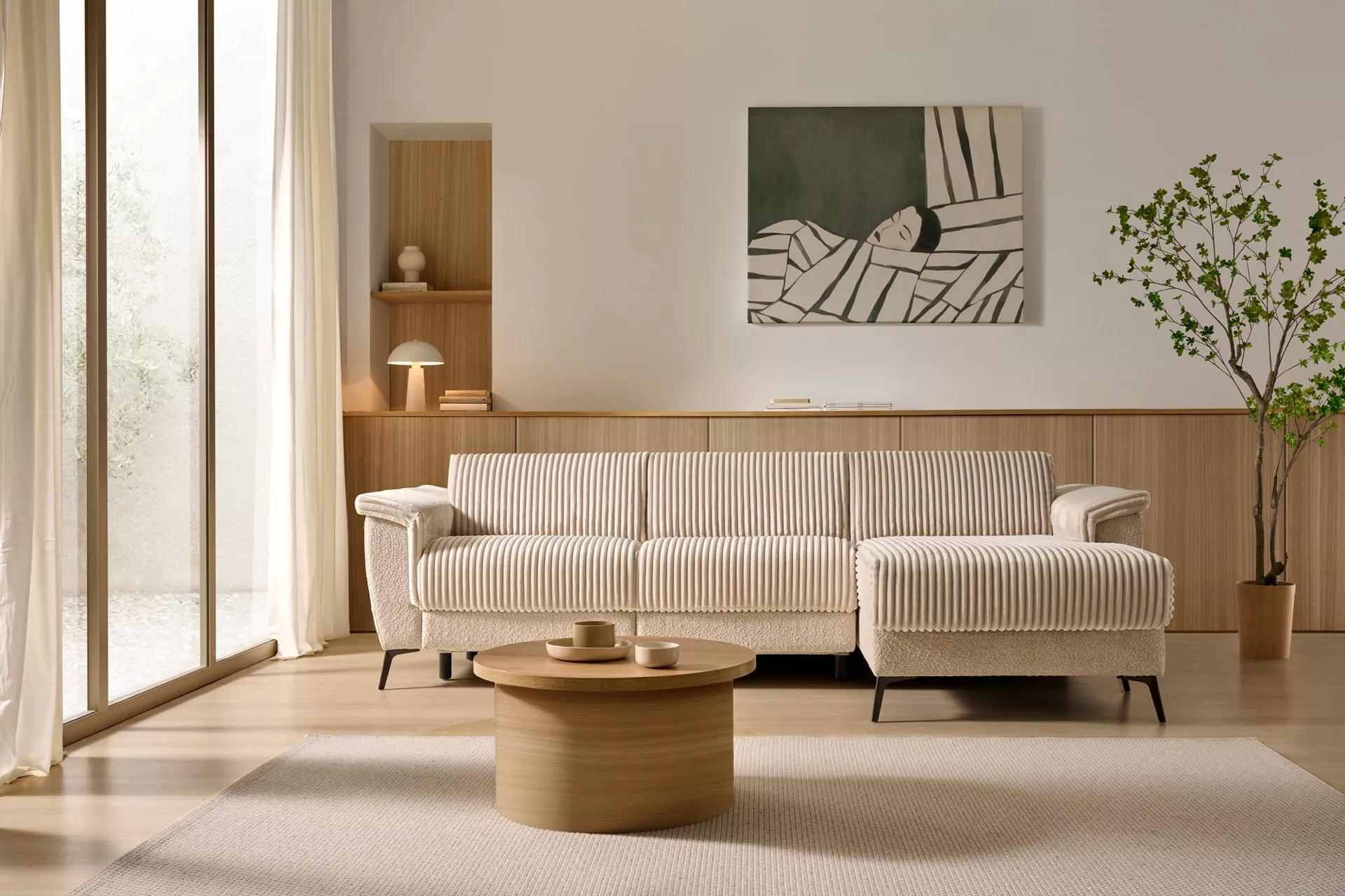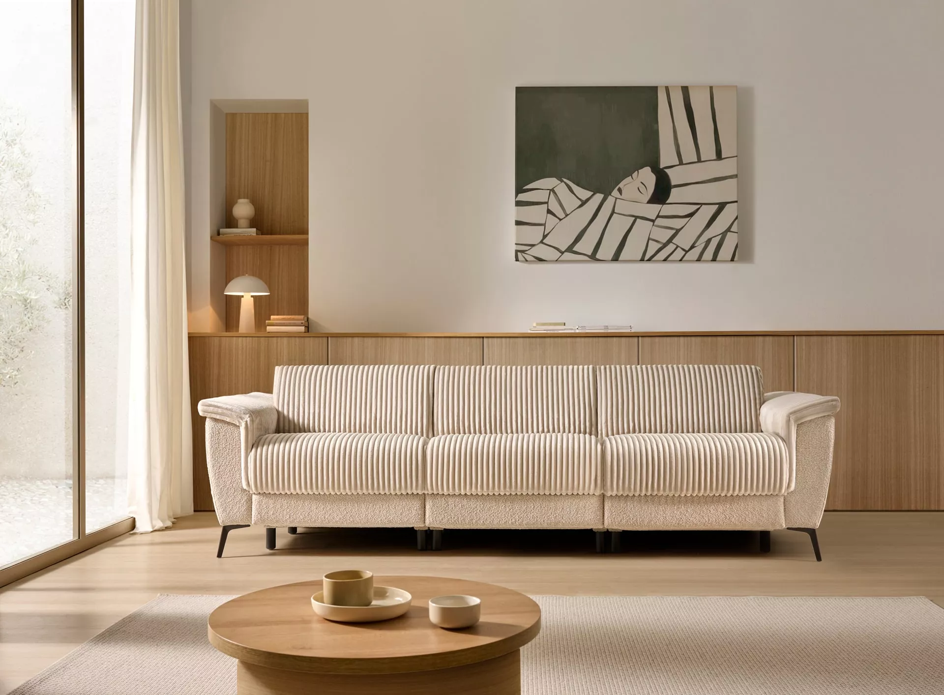Con cabezales abatibles, una sentada amplia y ergonómica y la posibilidad de elegir brazo estrecho para espacios reducidos, SELECTO se adapta a diferentes estilos de vida y necesidades, convirtiéndose en la pieza clave de tu salón.