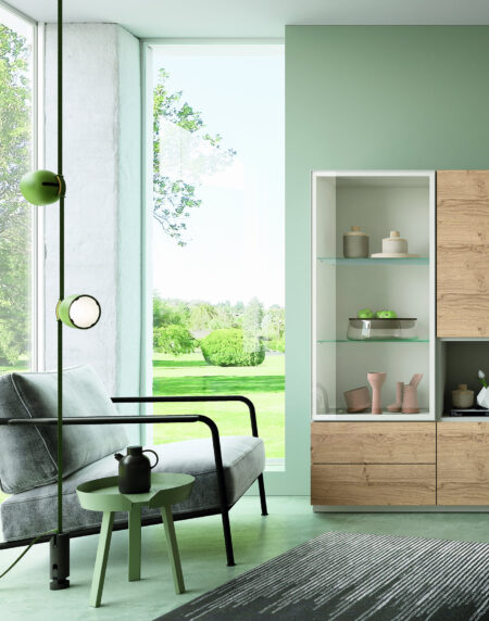 Atractivo buffet tipo vitrina, con gran capacidad de almacenaje en la que se ofrecen todas las soluciones a tus necesidades.