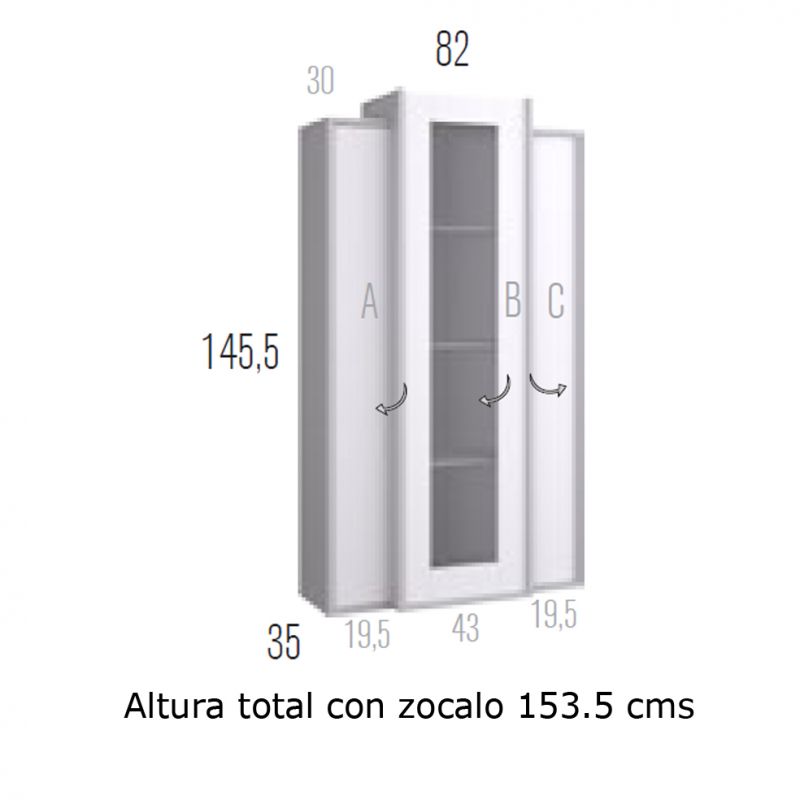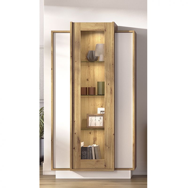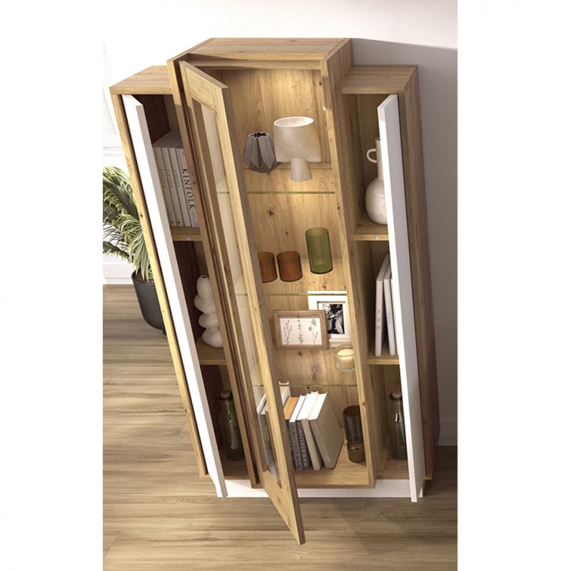 Vitrina de melamina acabada en color Nordic y Blanco con zócalo