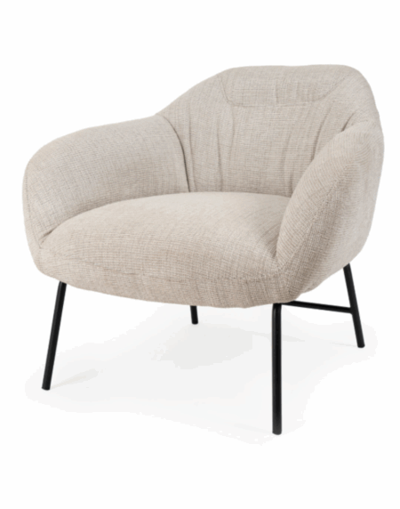 Tapizada en un tejido beige y de alta calidad, esta butaca ofrece un aire elegante y neutro, lo que la convierte en una opción