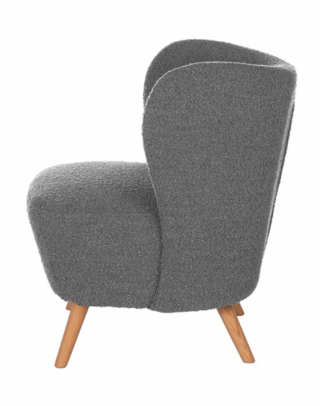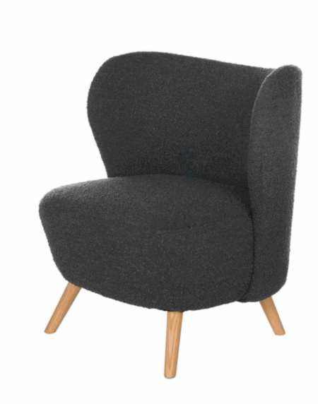 La butaca JAIPUR combina ligereza visual y una comodidad envolvente. Su tapizado en tejido borreguito aporta calidez y textura, contrastando de forma armoniosa con la naturalidad de las patas de madera en acabado claro.