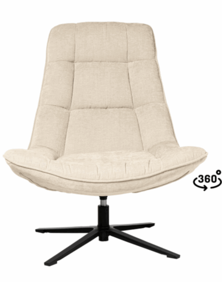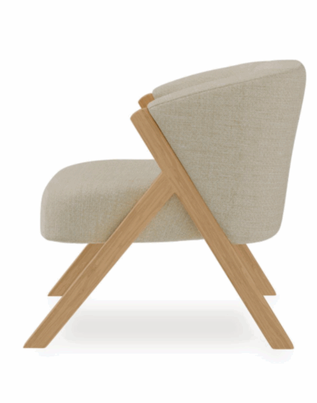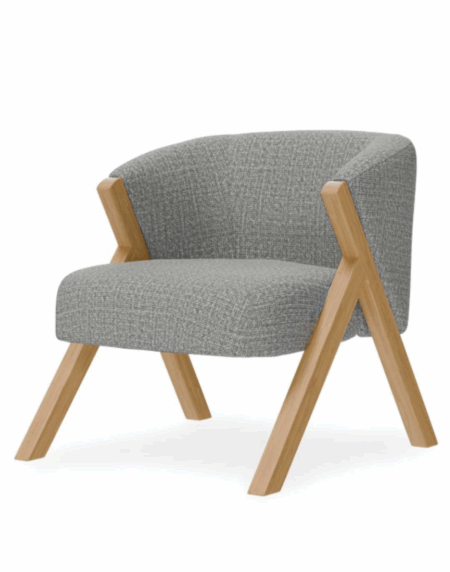 Con su original estructura de patas de madera, ofrece una experiencia acogedora que se adapta perfectamente a salones, dormitorios o rincones de lectura.