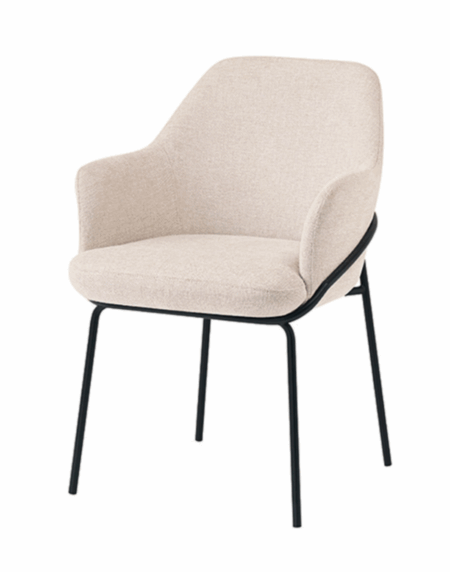 La combinación del tapizado con las patas metálicas negras le confiere un toque de elegancia, haciéndola perfecta para cualquier estancia.