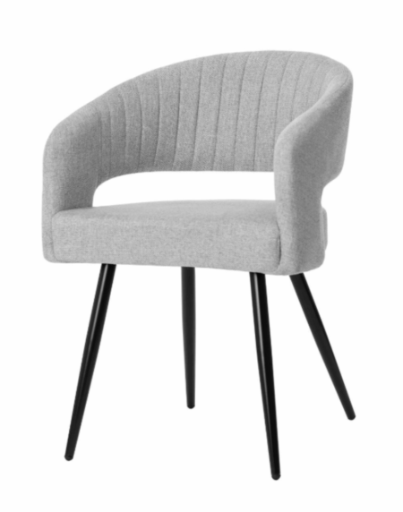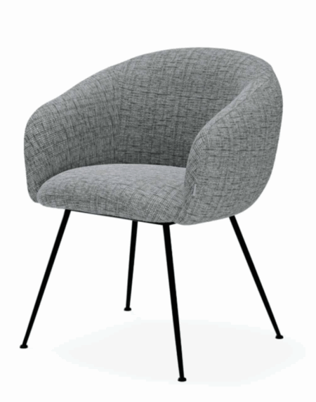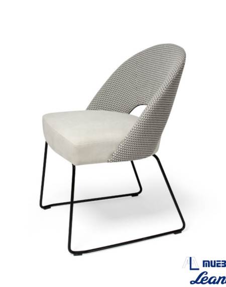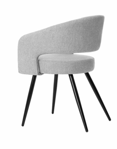 La silla LUCIA se distingue por su diseño curvado, único y elegante. Su acolchado y tapizado en color gris no solo garantizan una comodidad excepcional, sino que también le confieren un aspecto muy sofisticado.