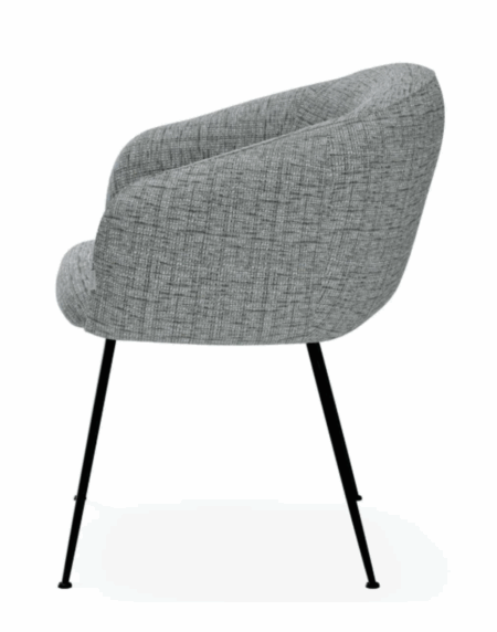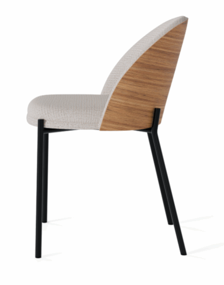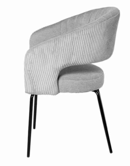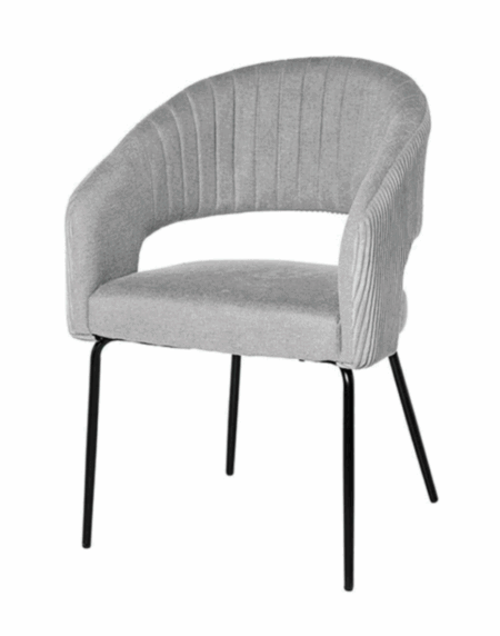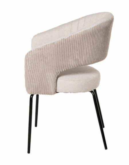 Añade un toque de elegancia contemporánea a tu estancia con la silla KORA. Su respaldo curvado, adornado con costuras verticales, le proporciona un aspecto sofisticado.