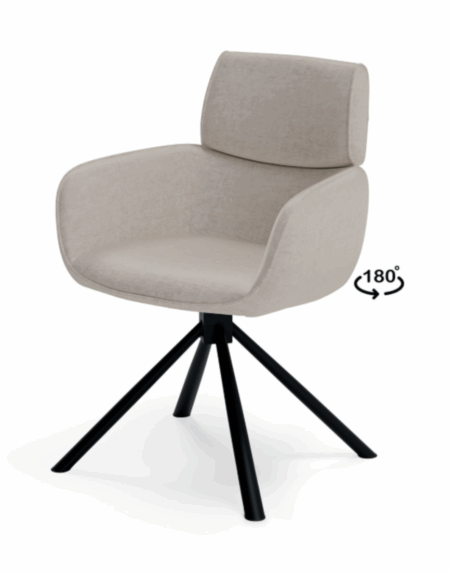 El tapizado textil del asiento y el respaldo, ambos acolchados, proporcionan una comodidad excepcional, invitando a disfrutar de largas sobremesas.