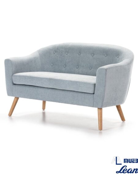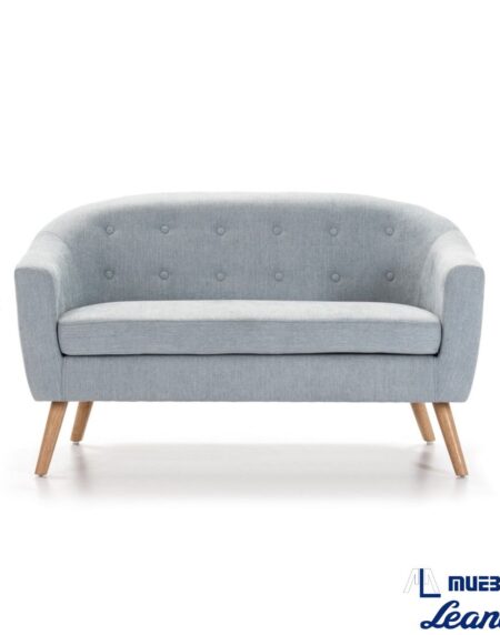 Sofá de dos plazas a conjunto de la "Butaca de tela SL-880" de nuestro catálogo. Su respaldo lleva capitoné para decorarlo y darle un toque único y está tapizado en diferentes colores: azul, beige o o gris. También tiene 4 patas de madera de roble natural y reposabrazos.