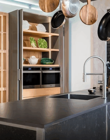 Una cocina pensada al milímetro: equilibrio entre la calidez de la madera, la sobriedad del mármol y el orden visual de una composición limpia y precisa.